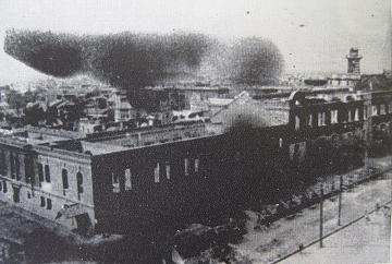 二戰期間,遭盟軍炸燬的「台南州廳」。